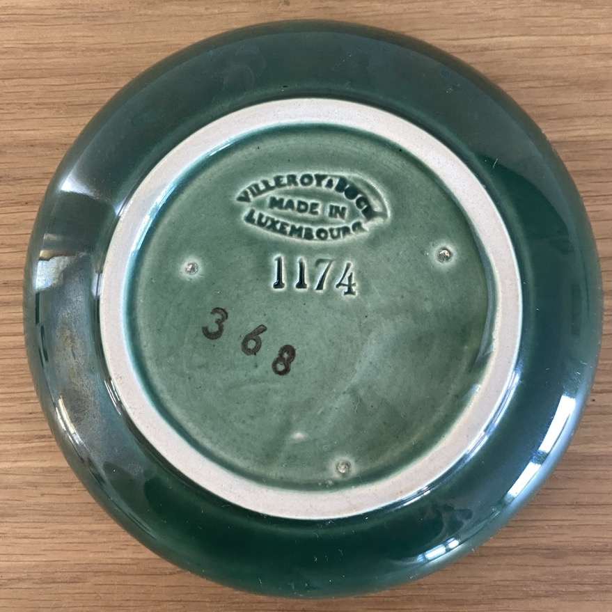 Cendrier en céramique (13 cm de diamètre) représentant « Vieil-Esch 1956 ». Il a été produit par Villeroy & Boch, porte le numéro de forme 1174 et le numéro de couleur 368.