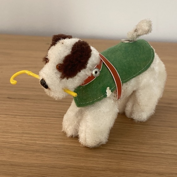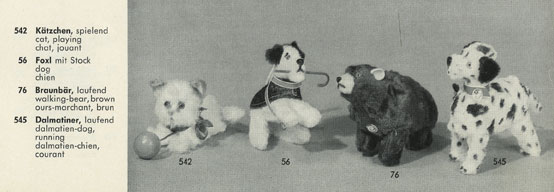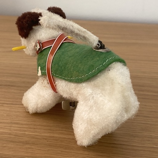 Petit chien mécanique (11 cm de long) de la manufacture Max Carl Germany, dans les années 1950-60. Il était dans le catalogue de 1967, sous le nom de Foxl. Le mécanisme fonctionne et fait tourner la queue.