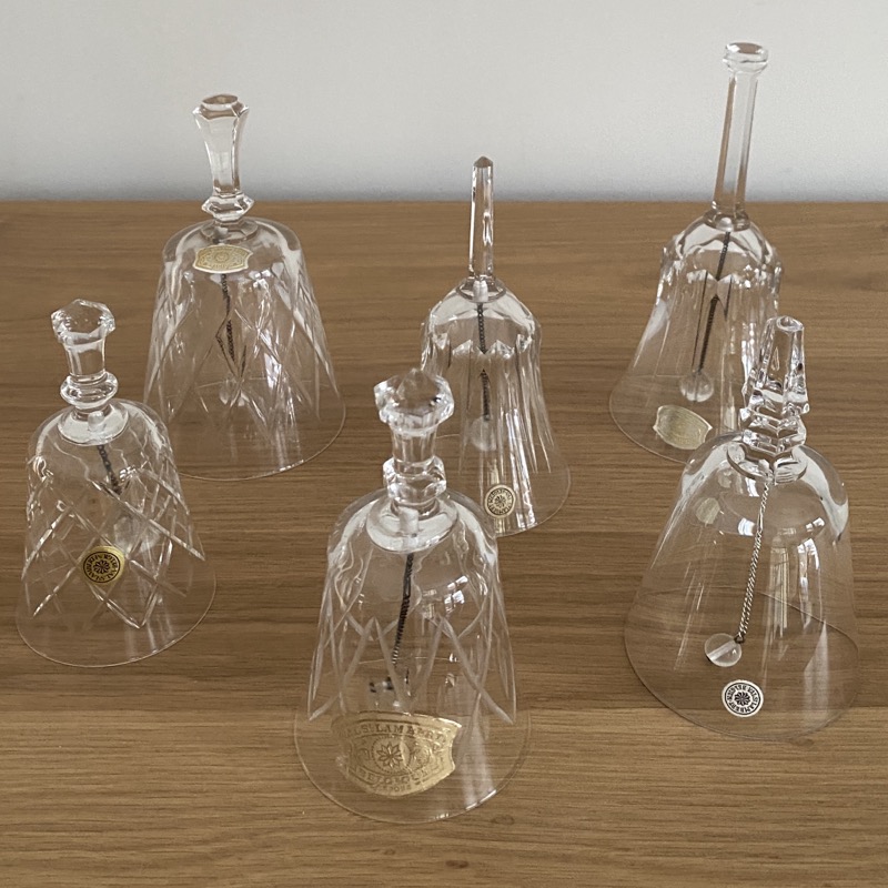 Jolie clochette de table en cristal, de la manufacture du Val Saint Lambert. Ces clochettes portent toutes l’étiquette du Val Saint Lambert.