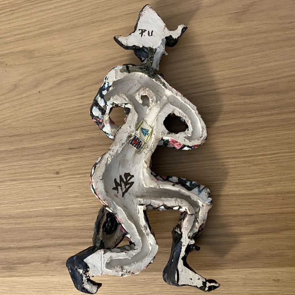 Sculpture murale (28 cm de haut) signé MB et PU à l’arrière. S’y trouve également une étiquette attestant « Marque de qualité, Made in Belgium, Artisanat d’Art Luxembourg ».