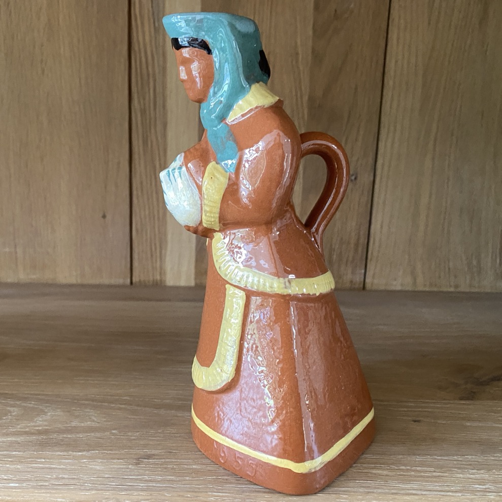 Cruche anthropomorphe Emaïschen (19 cm de haut) éditée en 1955. Elle est signée dessous « L N ». Léon Nosbusch (1897-1979), un sculpteur et peintre luxembourgeois, entre autres directeur d’une fabrique de porcelaine à Bruxelles. Il a obtenu le Prix Grand-Duc adolphe en 1929. Elle est en très bon état.