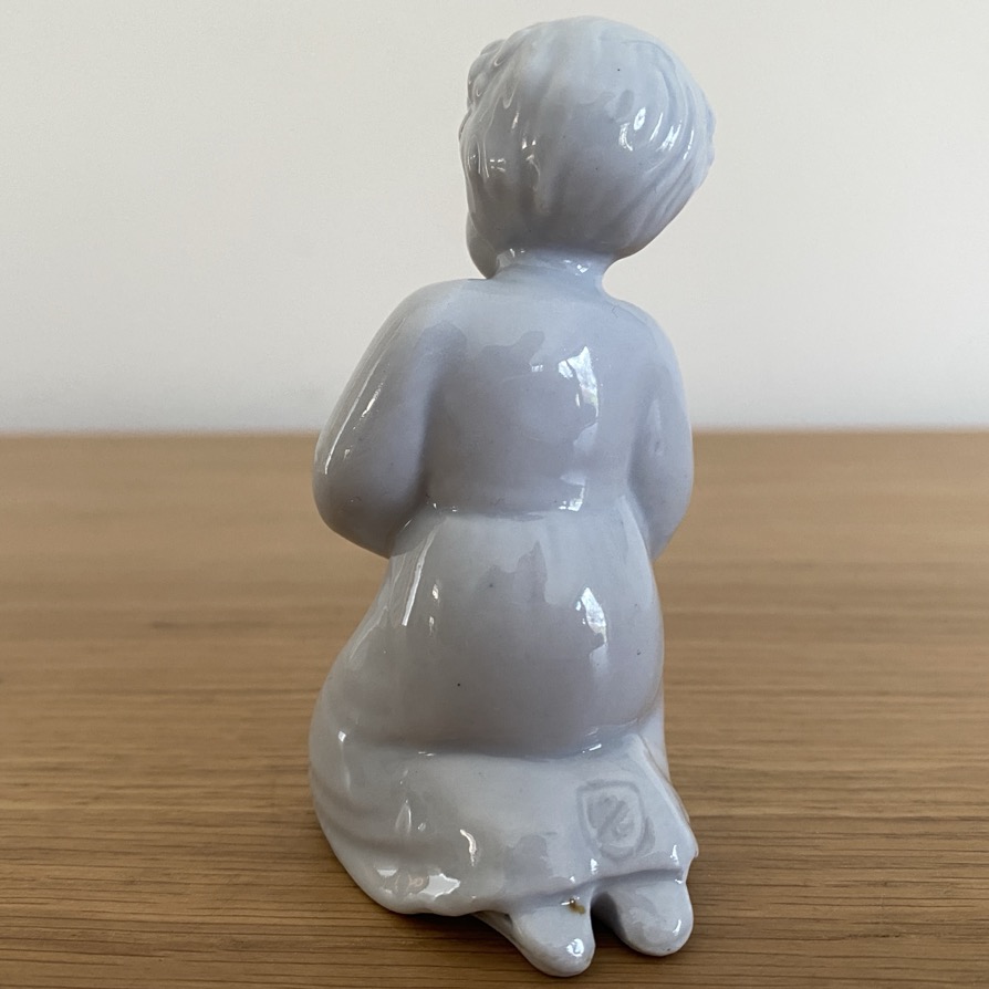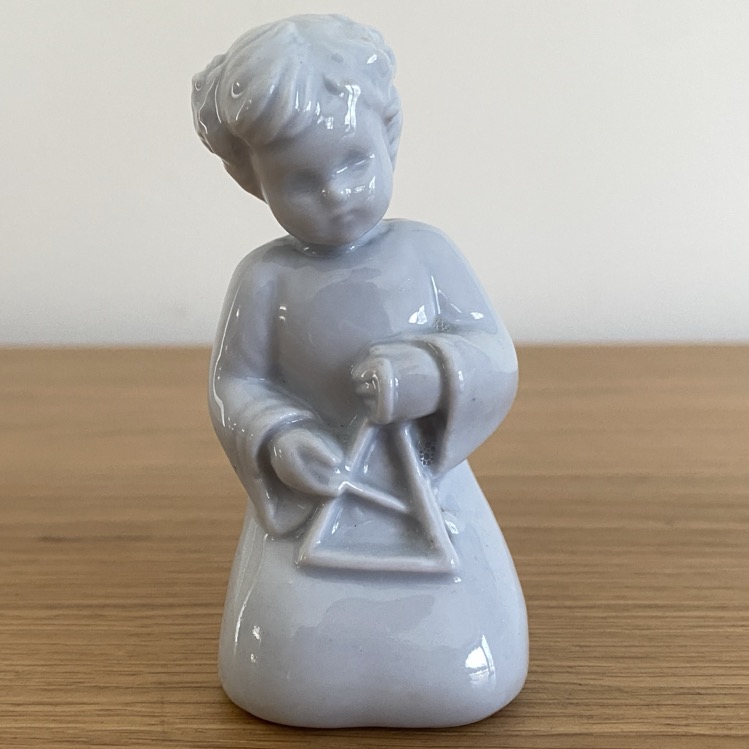 Joueur de triangle (8 cm de haut) produit par la société Teco à Bois de Breux à Chênée puis Grivegnée (société créée par Franz Theunissen, qui prend le nom de Teco en 1930. Cette statuette est signée en creux « Josette Bolland ». Producteur de porcelaine utilitaire, une section de porcelaine de table, religieuse et artistique est ouverte avec de nombreux designer : Georges Petit, Camille Balland, F.Delvaux, Charles Graffart). Les designers créateurs en art religieux sont Josette et Suzanne Bolland, Madeleine Wouters, E.Gisimondi, A.Guelfi, L.Giannoni, Jeanne Hebbelynck-Dutry. La section fermera ses portes en 1970.