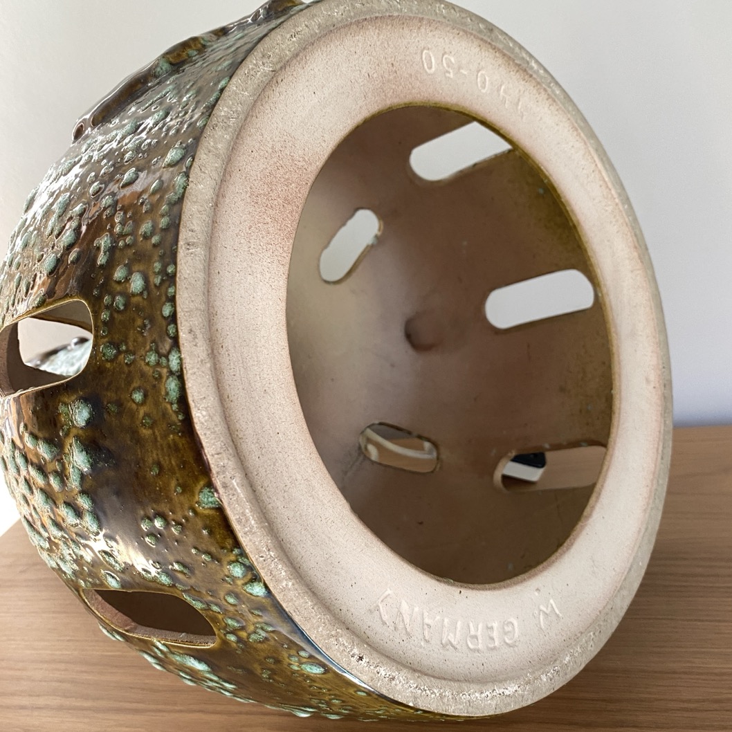 Grand pied de lampe (50 cm de haut) vintage, provenant d’une production West Germany et portant le numero de forme 440-50. cette lampe à double ampoules (en haut et en bas) a été produite dans les années 1970.