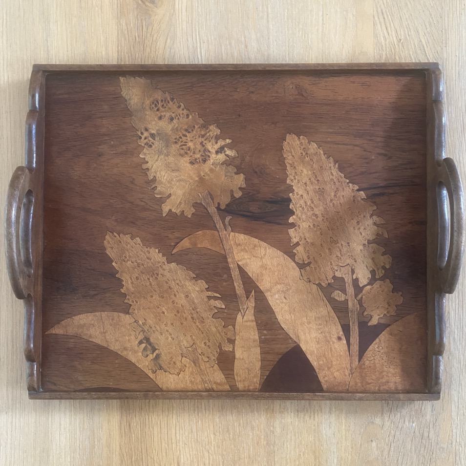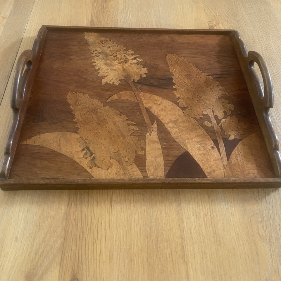 Plateau en bois marqueté, Emile Gallé, Art Nouveau