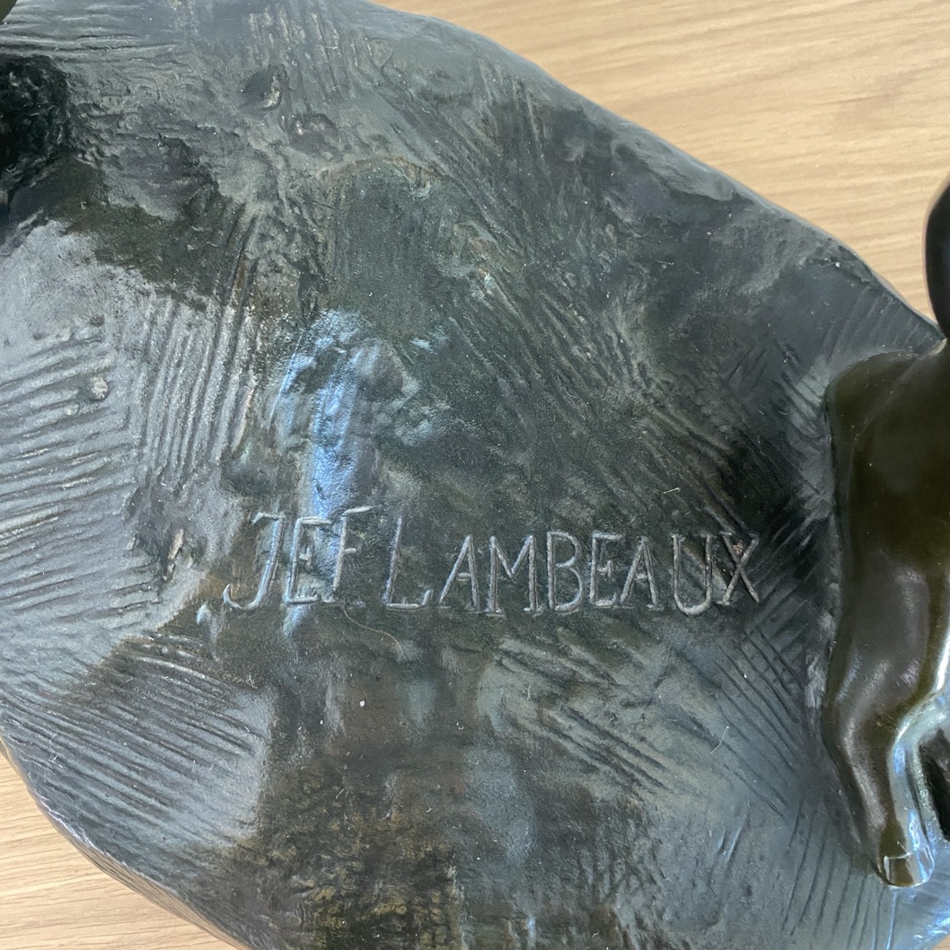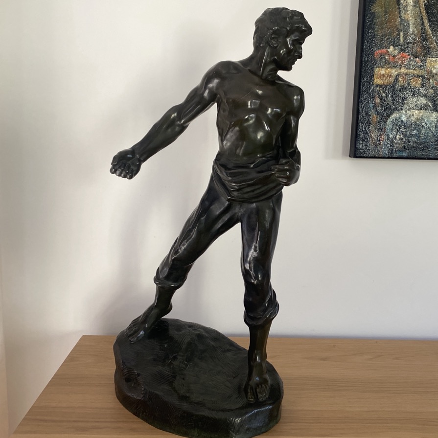 Belle sculpture en bronze (64 cm de haut) représentant « Le Semeur » de Jef Lambeaux, sculpteur belge (1852-1908). Elle date des années 1890-1910. Elle est signée sur le socle et porte également la mention du fondeur « Usines Mogave Soc An Bruxelles ». Jef Lambeaux est un représentant du réalisme et du naturalisme, avec des touches de symbolisme. Ses oeuvres sont connues pour leur précision minutieuse et leur capacité à exprimer les émotions humaines.