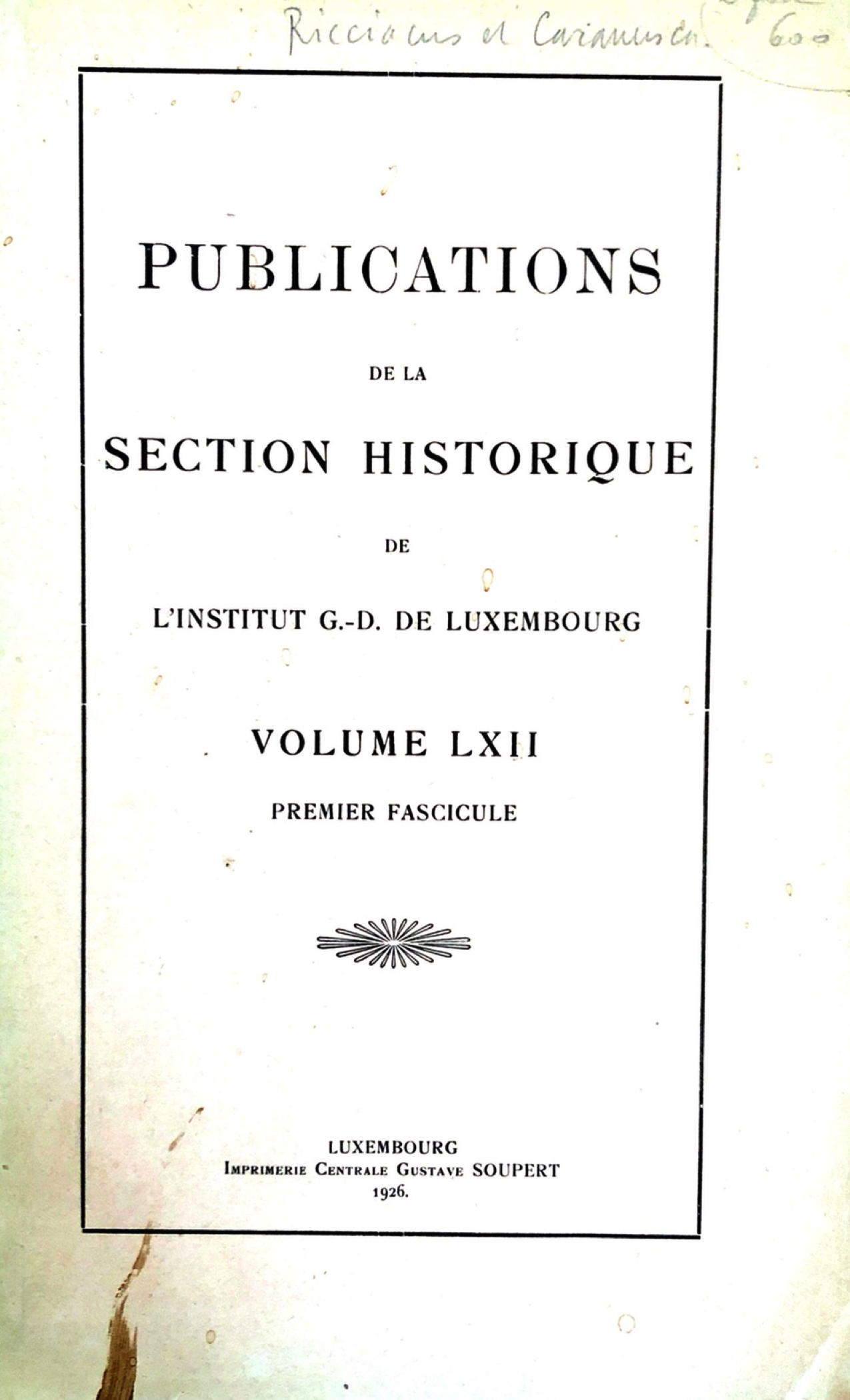 section historique 1926 vol LXII /
